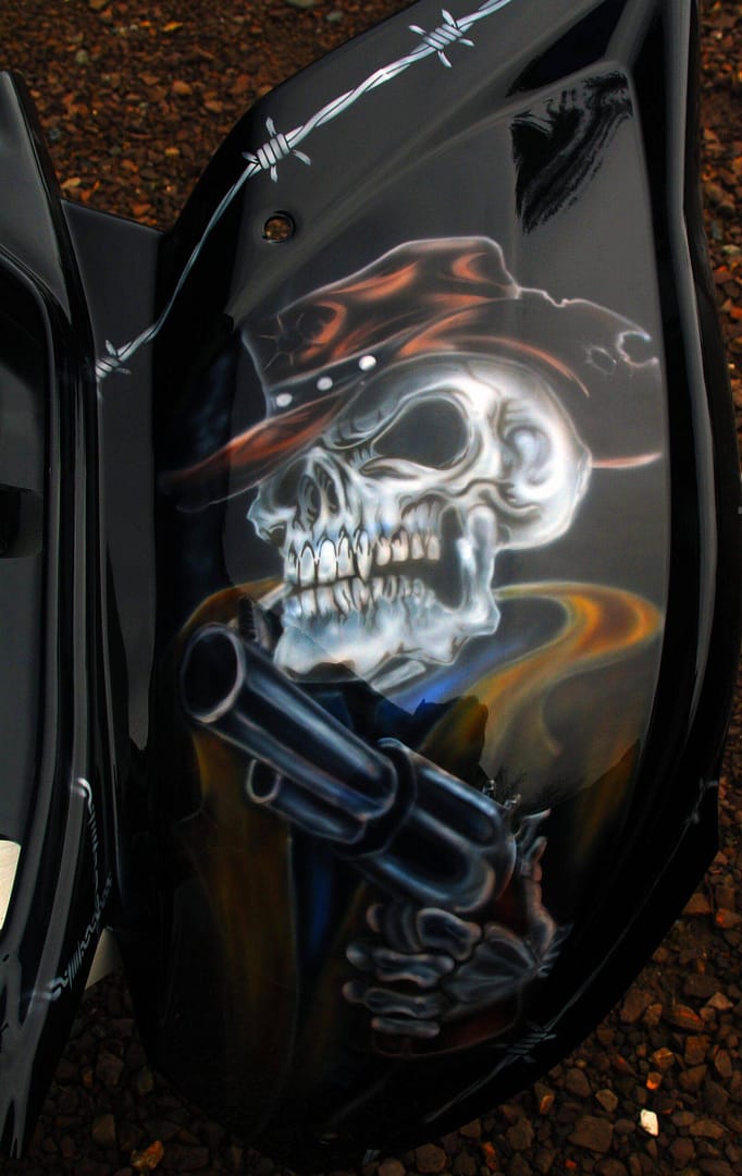 A versatile artist with a passion for dynamic color and bold imagery, I work primarily in acrylic but have spent years mastering a range of mediums—from custom airbrushing and watercolor to large-scale murals, design, and graphics. My portfolio includes five award-winning motorcycles recognized for Best in Graphics, numerous murals gracing everything from towering building exteriors to intimate indoor spaces, and a completed rodeo series in acrylic that captures the grit and spirit of the West.